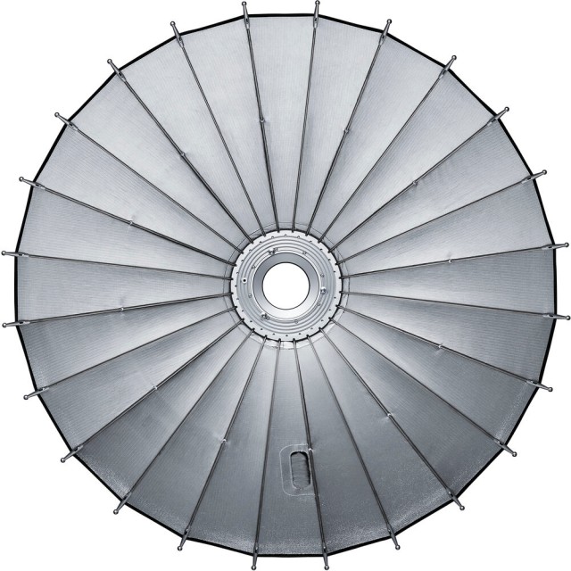 El Godox Knowled Parabolic 88 es un reflector parabólicode alta gama diseñado para proporcionar una iluminación muy controlada y contrastada con reflejos marcados. Gracias a su diámetro frontal de 35,4" y a su profunda forma parabólica, crea una luz concentrada pero envolvente, ideal para aplicaciones de moda, cosmética y retratos. Su interior plateado maximiza el rendimiento y el contraste, mientras que la superficie exterior negra reduce la dispersión de la luz para un excelente control direccional. El Parabolic 88 está fabricado con 24 varillas resistentes y un eje de montaje patentado, lo que garantiza rigidez y una forma constante durante su uso. Este reflector es una herramienta potente para los fotógrafos que buscan una fuente de luz profesional y controlable con una caída nítida característica y un carácter dinámico.