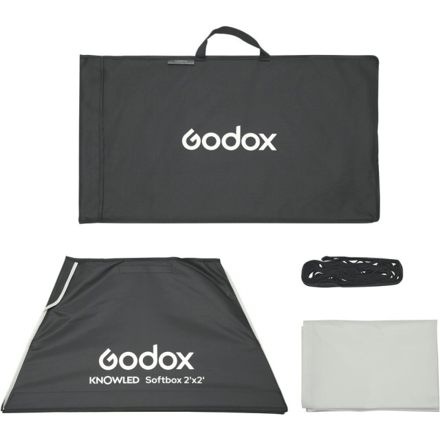 Mejora tu iluminación con el softbox Godox Knowled Softbox con rejilla, diseñado específicamente para el panel de luz Godox P600BI. Este softbox, de 61 x 61 cm, suaviza y difumina la luz intensa, creando una iluminación suave y uniforme, ideal para fotografía y videografía. La rejilla incluida permite un control preciso de la difusión de la luz, mientras que la parte frontal desmontable ofrece versatilidad para diversos efectos de iluminación. El softbox está fabricado con tejido resistente y metal, y se acopla directamente al P600BI sin necesidad de utilizar un soporte o un anillo de fijación rápida, lo que garantiza una configuración rápida y sencilla. Es ligero y portátil, pesa solo 1,1 kg, y se suministra en una caja compacta (66 x 38 x 5,7 cm) para un almacenamiento y transporte cómodos.