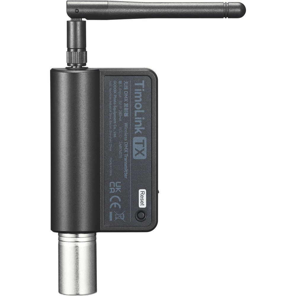 El Godox Knowled TimoLink TX es un transmisor DMX inalámbrico profesional con un módulo LumenRadio CRMX integrado que garantiza una transmisión fiable de la señal a largas distancias de hasta 300 metros. Está diseñado para cineastas, cadenas de televisión y técnicos de iluminación. Convierte cualquier consola DMX con cable en un sistema inalámbrico y ofrece un conector XLR giratorio de 5 pines con un ángulo de giro de 270° para una compatibilidad máxima. Gracias a los botones independientes de configuración/reinicio y a la función de prueba integrada para confirmar la salida DMX, el TimoLink TX proporciona un control eficaz, estable y flexible para los modernos sistemas de iluminación.