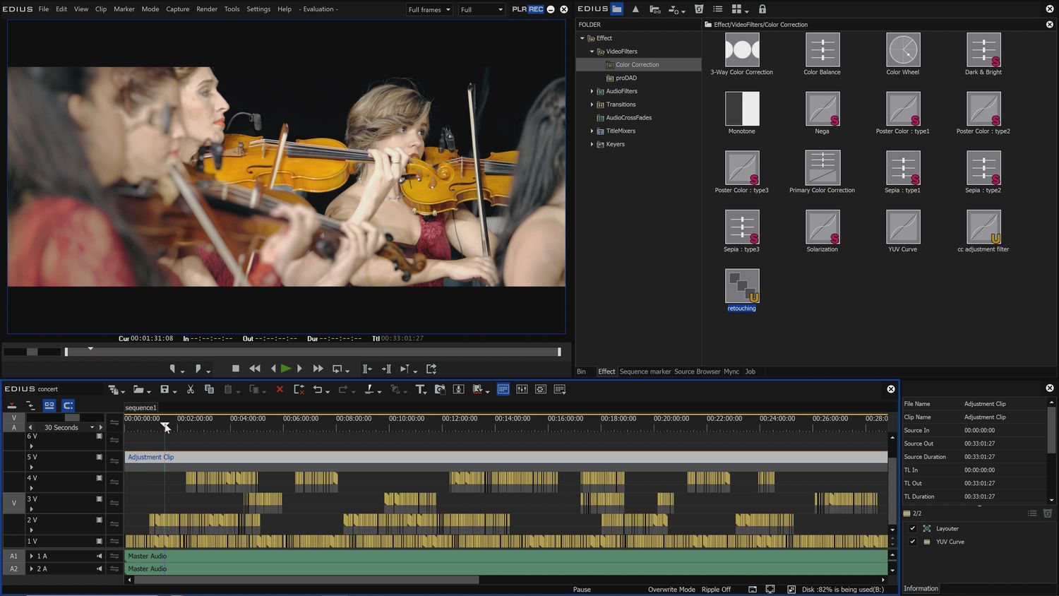 • EDIUS 11 ofrece funciones avanzadas para la edición de medios, la gestión de proyectos y secuencias, la conversión a otros formatos, el seguimiento de las operaciones de cálculo que se realizan en segundo plano, etc.