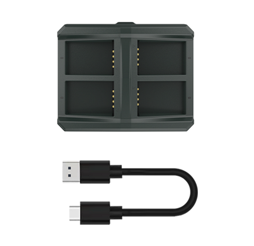 Este estuche de carga de 4 ranuras es un accesorio imprescindible para los usuarios de los cascos Hollyland Solidcom C1, ya que ofrece una forma cómoda y organizada de mantener las baterías cargadas y listas para una comunicación prolongada.