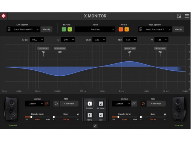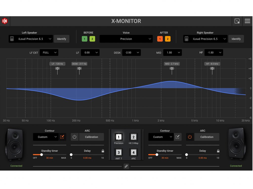 Los monitores iLoud Precision incluyenX-MONITOR, una aplicación de control avanzada de nuevo desarrollo para Mac y Windows. Esta ayuda con la calibración ARC y permite ajustes avanzados del espacio acústico y modificaciones para adaptar los iLoud Precision a tu gusto. Al mismo tiempo, ofrece un cómodo acceso remoto a los ajustes del panel trasero de los monitores. El software es plug-and-play a través de una sencilla conexión USB, sin necesidad de configuraciones especiales en el ordenador.