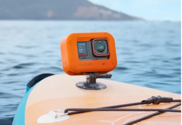 La funda flotante Insta360 INST120-10 Ace Pro evita que la cámara se hunda durante las actividades acuáticas. La carcasa es de color naranja brillante para una buena visibilidad y permite un acceso completo a los botones de la cámara, el micrófono y la pantalla táctil abatible. Sus soportes plegables en la parte inferior son compatibles con el soporte de fijación rápida, lo que la convierte en un accesorio práctico e imprescindible para grabar en el agua.