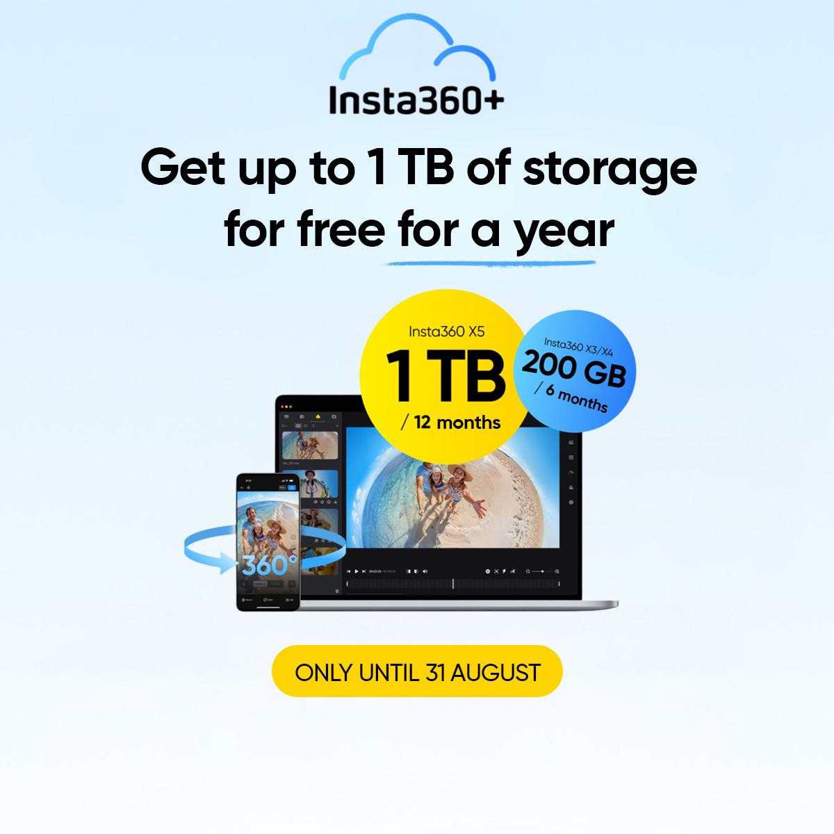 ¿Estás pensando en comprar una cámara de acción de 360° deInsta360? ¡Pues ahora es el momento ideal! Si activas la cámaraen la aplicación de Insta360antes del 31 de agosto de 2025, obtendrásventajas especialesen la nube de forma gratuita. La promoción se aplica a determinados modelosde las cámaras de acción Insta360 X5, X4 y X3.