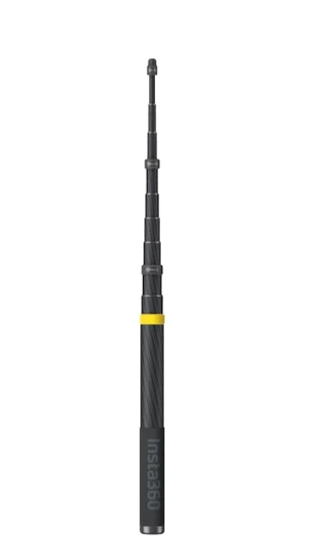 El palo selfie extensible Insta360 (INST100-32) se puede extender hasta 300 cm, está fabricado en fibra de carbono ligera y se elimina automáticamente de la grabación, lo que permite obtener tomas espectaculares similares a las de los drones con las cámaras Insta360 X4, X3 y X2.