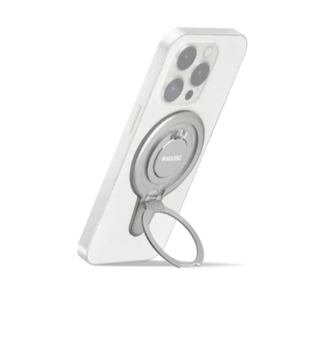 El soporte magnético para teléfono Insta360 Flow 2 Pro (INST904-03) es un accesorio compatible con MagSafe diseñado para el iPhone 12 y modelos posteriores. Está equipado con potentes imanes N52 y un anillo metálico giratorio de 360° que sujeta tu teléfono de forma segura, sirve como soporte y protege tu dispositivo con silicona blanda. Ofrece una grabación rápida y fluida como alternativa a la pinza magnética estándar.