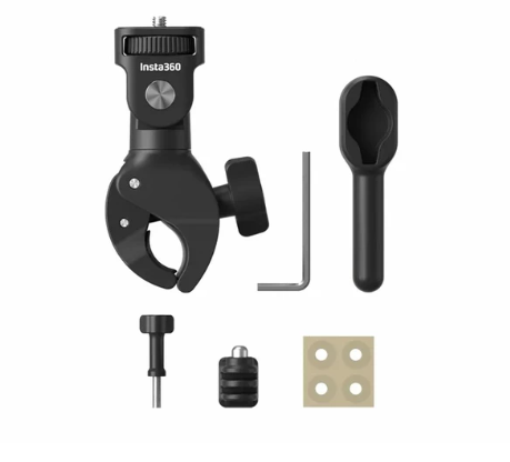 La abrazadera Insta360 Heavy Duty Clamp (INST110-39) es una abrazadera universal y resistente que permite fijar de forma segura la cámara al manillar, a barras u otras superficies. Su diseño sin rótula garantiza unas grabaciones estables y es compatible con la Insta360 GO 3 / GO 3S mediante un soporte de fijación rápida.