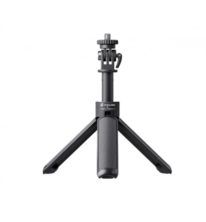 El Insta360 Mini Tripod 2-en-1 (INST110-20) combina un palo selfie telescópico con un trípode integrado, lo que ofrece una gran versatilidad para grabar con una cámara de acción. Es ligero pero resistente, soporta hasta 250 g y se puede extender de 14,5 cm a 40 cm, lo que lo hace ideal para selfies, tomas estables o ángulos creativos.
