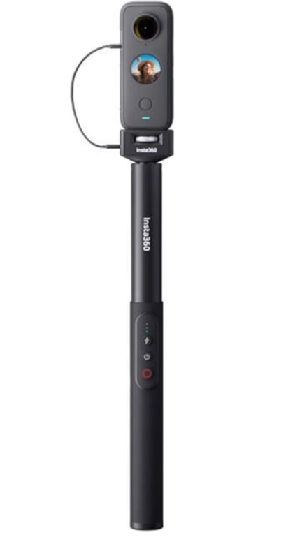 El Insta360 Selfie Stick (INST700-14) es un palo selfie ajustable con una longitud de 33 a 100 cm y una batería de 4500 mAh, que sirve para cargar la cámara Insta360 ONE X2 durante los desplazamientos. Incluye un mando a distancia integrado para facilitar la captura de imágenes, lo que permite obtener fotos únicas desde una perspectiva en tercera persona y sesiones de grabación prolongadas.