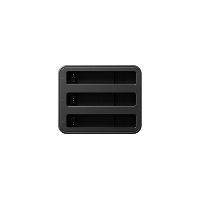Base de carga para tres baterías de la cámara Insta360 X4. La base carga una batería de 2290 mAh en 43 minutos (al 80 % en 26 minutos). Peso: 109 g. Dimensiones: 75 x 62 x 34 mm