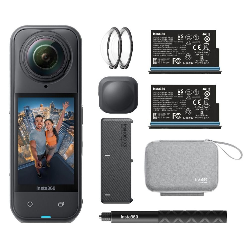 Además, el paquete incluye un palo selfie, dos baterías de repuesto, un cargador rápido, una funda protectora y un kit de cambio de lentes.