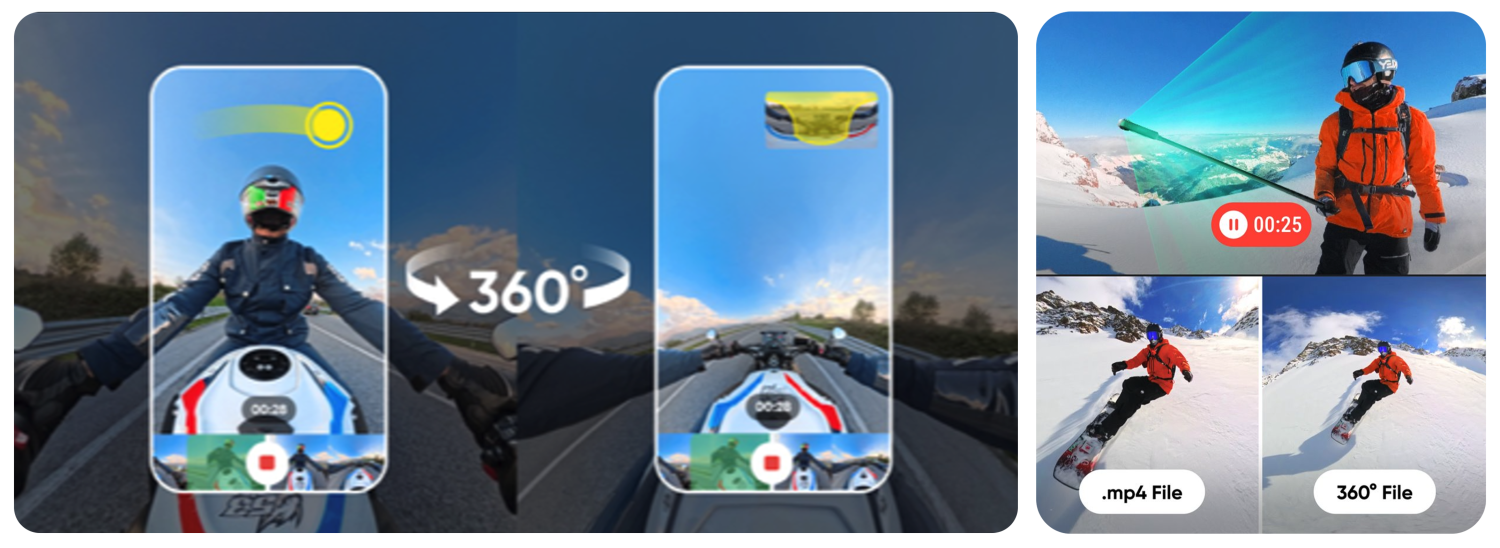 La magia de la captura en 360º reside en elegir los mejores ángulosde toma. Hazlocon calma después de la acciónynuncamásteperderásningúnmomentoincreíble.En la aplicación mejoradade Insta360,utilizalas herramientasde recomponción conIAy, a continuación,solotienes que iniciarla grabación yseleccionarlasmejores tomas.