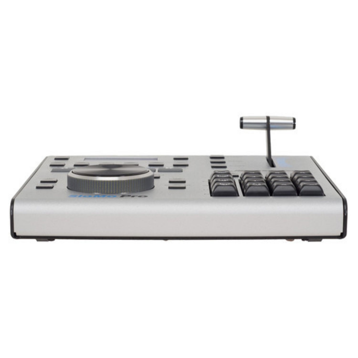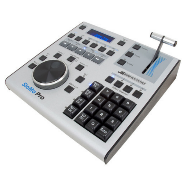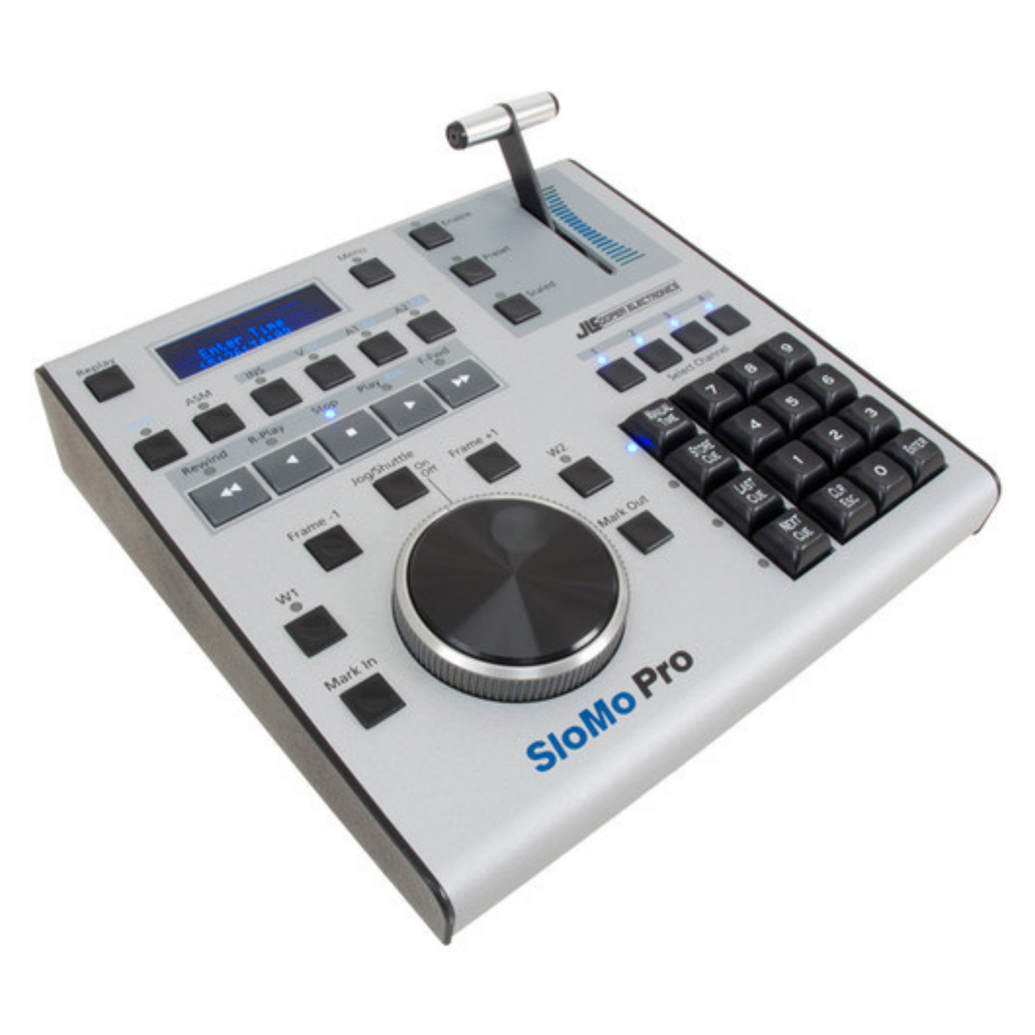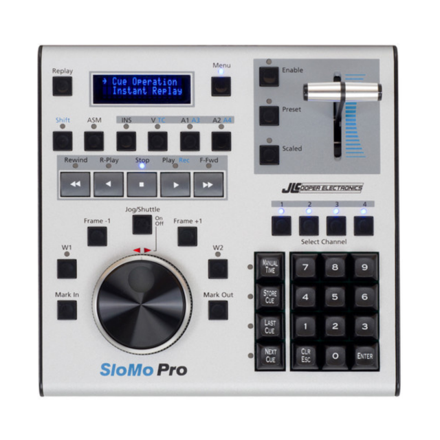 El nuevo SloMoPro™ USB de JLCooper es la nueva generación del ES-SloMo (es el sustituto directo del ES-SloMo J USB) con un diseño renovado y una carcasa elegante y de perfil bajo. Su carcasa compacta ocupa un 20 % menos de espacio sin alterar la disposición ni los controles.