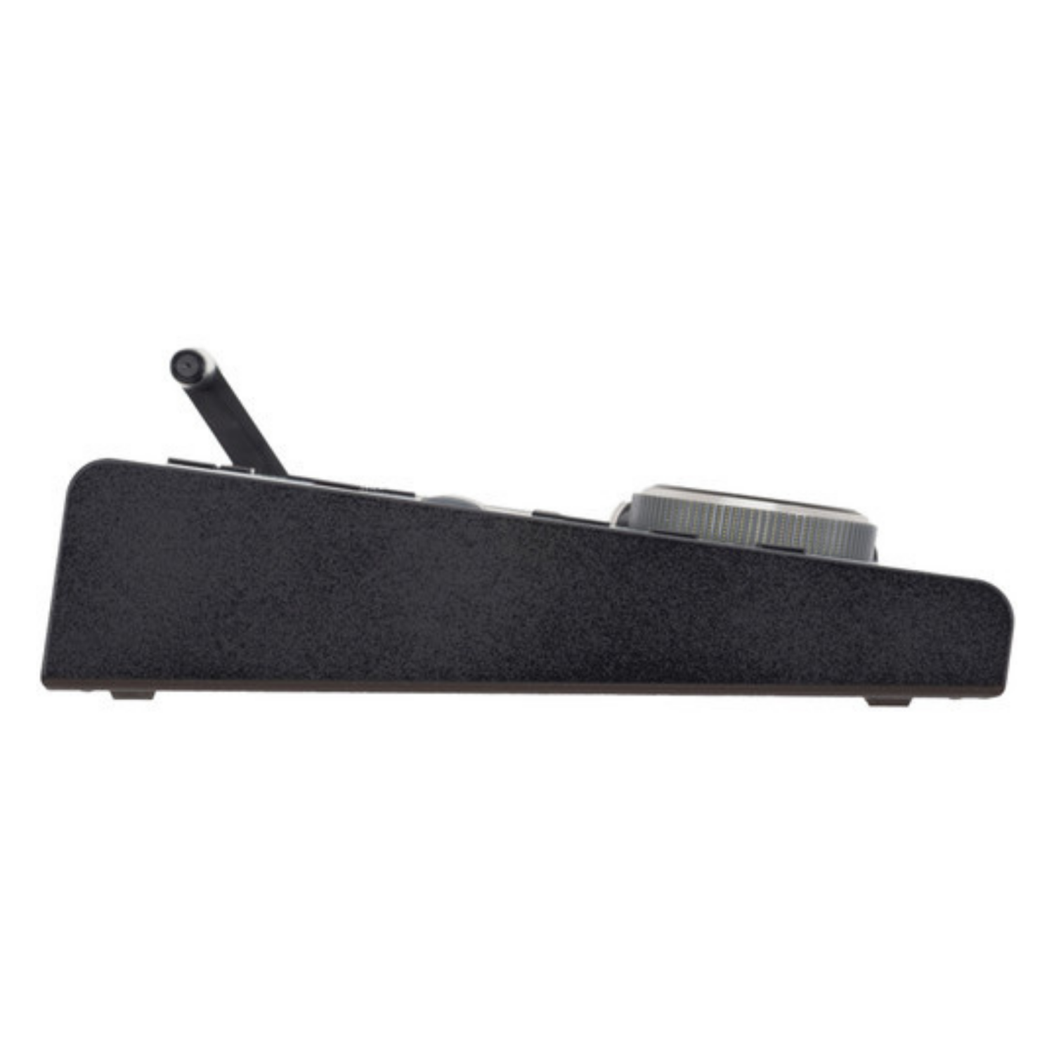 SloMoPro™ USB está equipado con botones de transporte profesionales, una rueda JLC jog wheel con anillo shuttle codificada ópticamente, una barra T de alta calidad para cámara lenta, una pantalla VF de 2 x 16 fácilmente legible, un teclado numérico de tamaño completo y botones de función de acceso rápido.