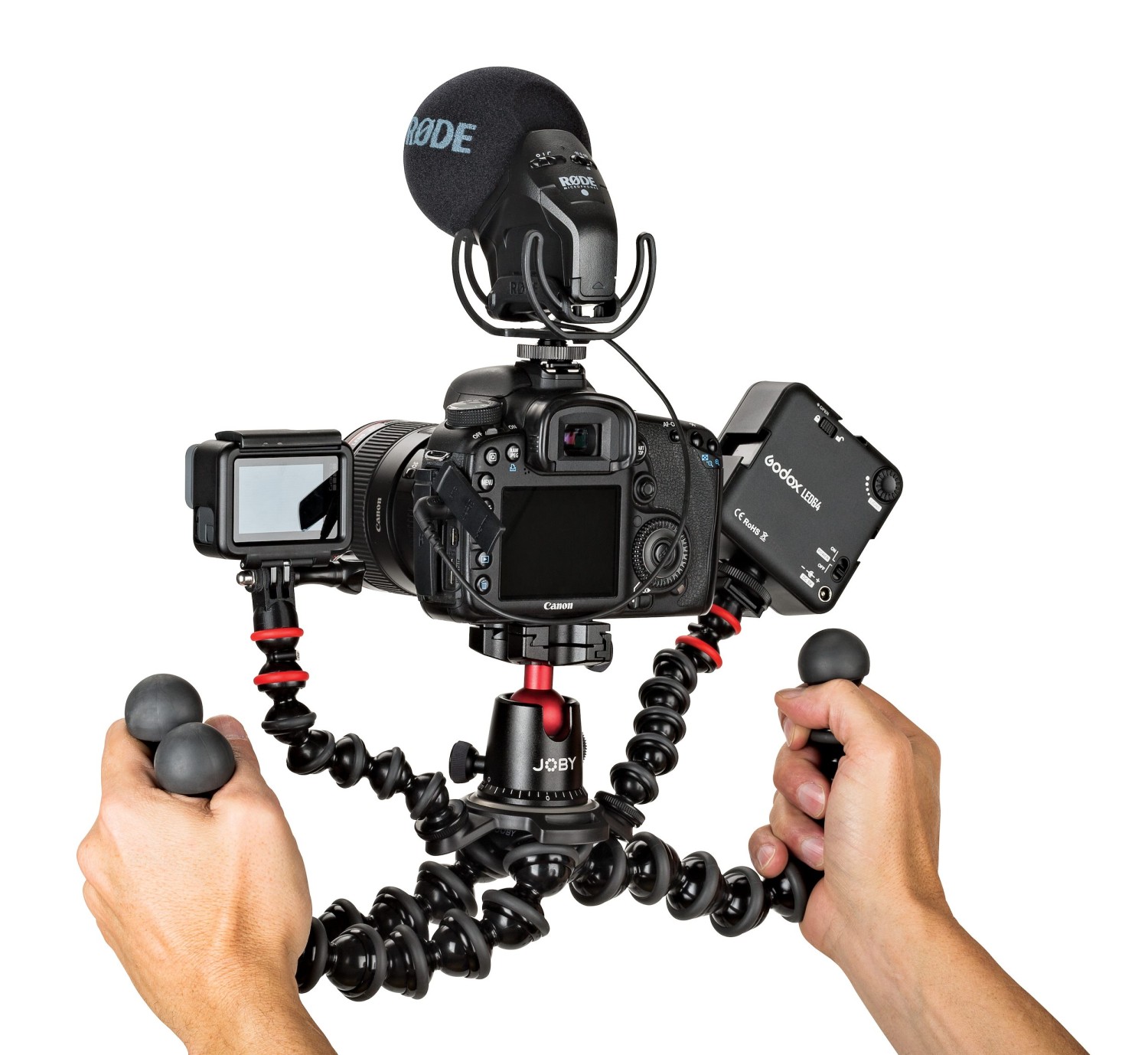 ElJoby GorillaPod Rig (negro/antracita) es un trípode de alta gama diseñado para creadores que necesitan flexibilidad y fiabilidad. Sus patas articuladas y flexibles te permiten fijar la cámara o el equipo en superficies planas , terrenos irregulares o enrollarlas alrededor de postes, ramas o barandillas. El GorillaPod Rig , diseñado tanto para la fotografía como para la grabación de vídeo, proporciona una base estable y , al mismo tiempo , es ligero y portátil, lo que lo convierte en una herramienta indispensable para la creación de contenido sobre la marcha .
