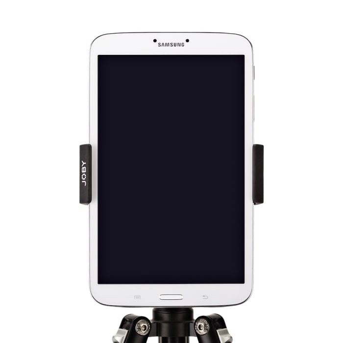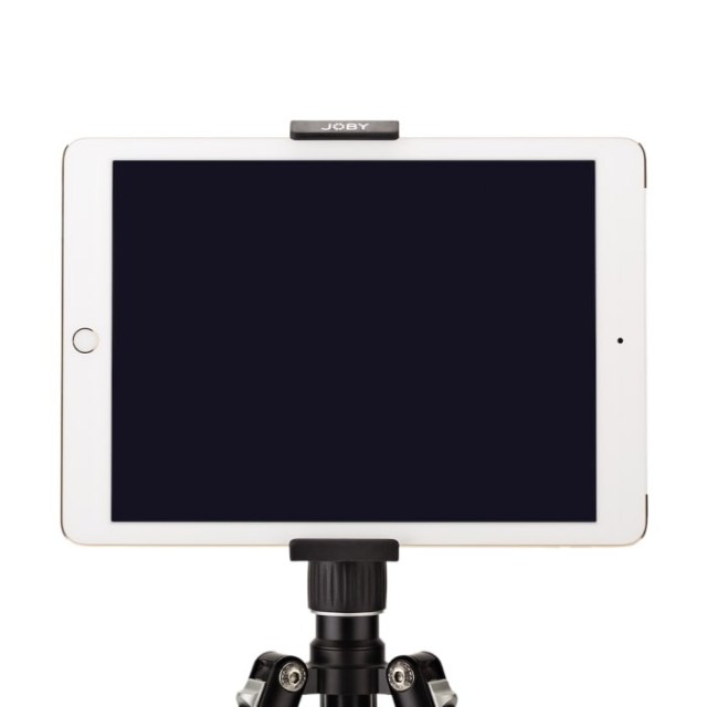 El soporte Joby GripTight Mount PRO Tablet es un soporte de alta gama para tabletas, diseñado para dispositivos con una anchura de entre12,8 y 19,2 cm y un grosor de hasta 12 mm . Está fabricado en plástico ABS resistente , TPE y acero inoxidable , permite una inclinación de 180° para una visualización sin reflejos y se puede acoplar a trípodes GorillaPod o a cualquier trípode estándar mediante una rosca de 1/4" .