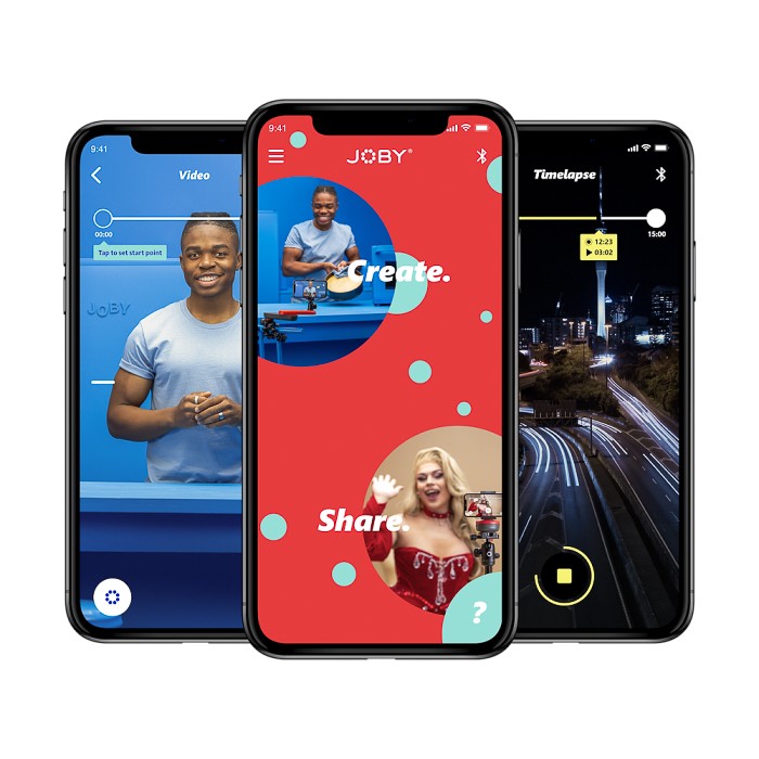 Gracias a su diseño robusto y a su capacidad de carga de 650 g, este soporte funciona a la perfección con teléfonos que tengan la aplicación Joby Motion para iOS o Android.