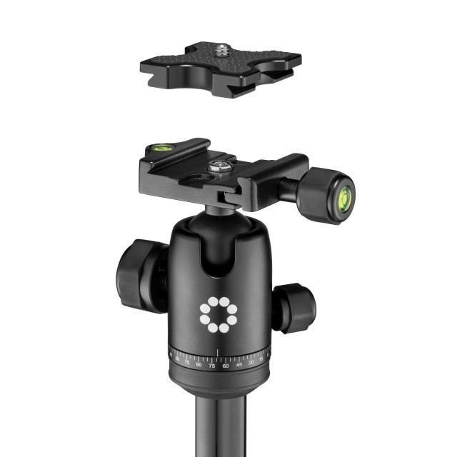 La placa de fijación rápida compatible con Arca-Swiss cuenta con la misma tecnología de placa metálica que el kit Joby GorillaPod 5K. También incluye un práctico gancho desmontable para fijar una mochila o bolsa y lograr una estabilidad aún mayor.
