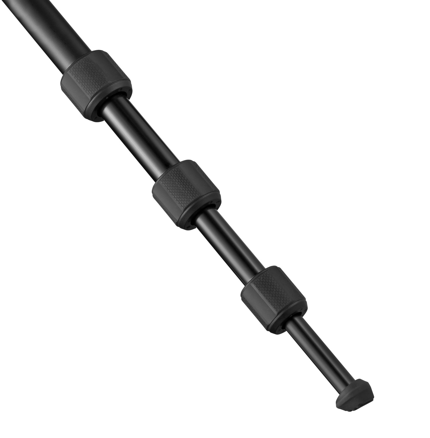 Este trípode robusto y resistente está fabricado en aluminio duradero, tiene unas dimensiones compactas y pesa solo 1,69 kg, además de soportar condiciones de trabajo exigentes.