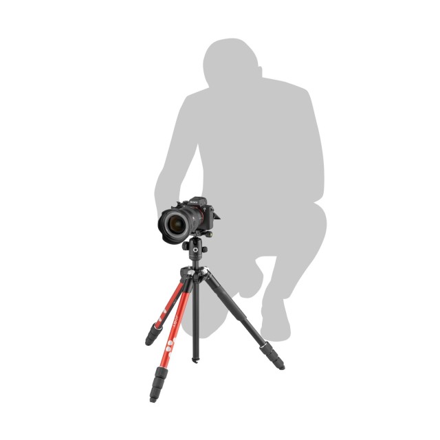 Su capacidad de carga de hasta 8 kg permite soportar tanto cámaras sin espejo ligeras como cámaras réflex más grandes. Las patas del trípode están equipadas con los probados y de alta calidad cierres M-lock, que facilitan el ajuste rápido y cómodo de las 4 secciones de las patas con solo girarlas.