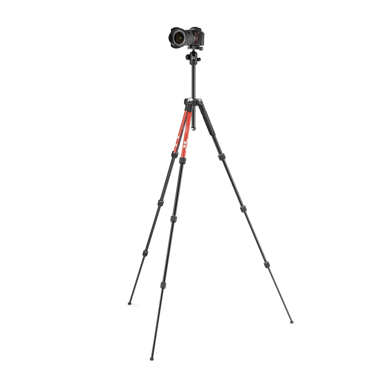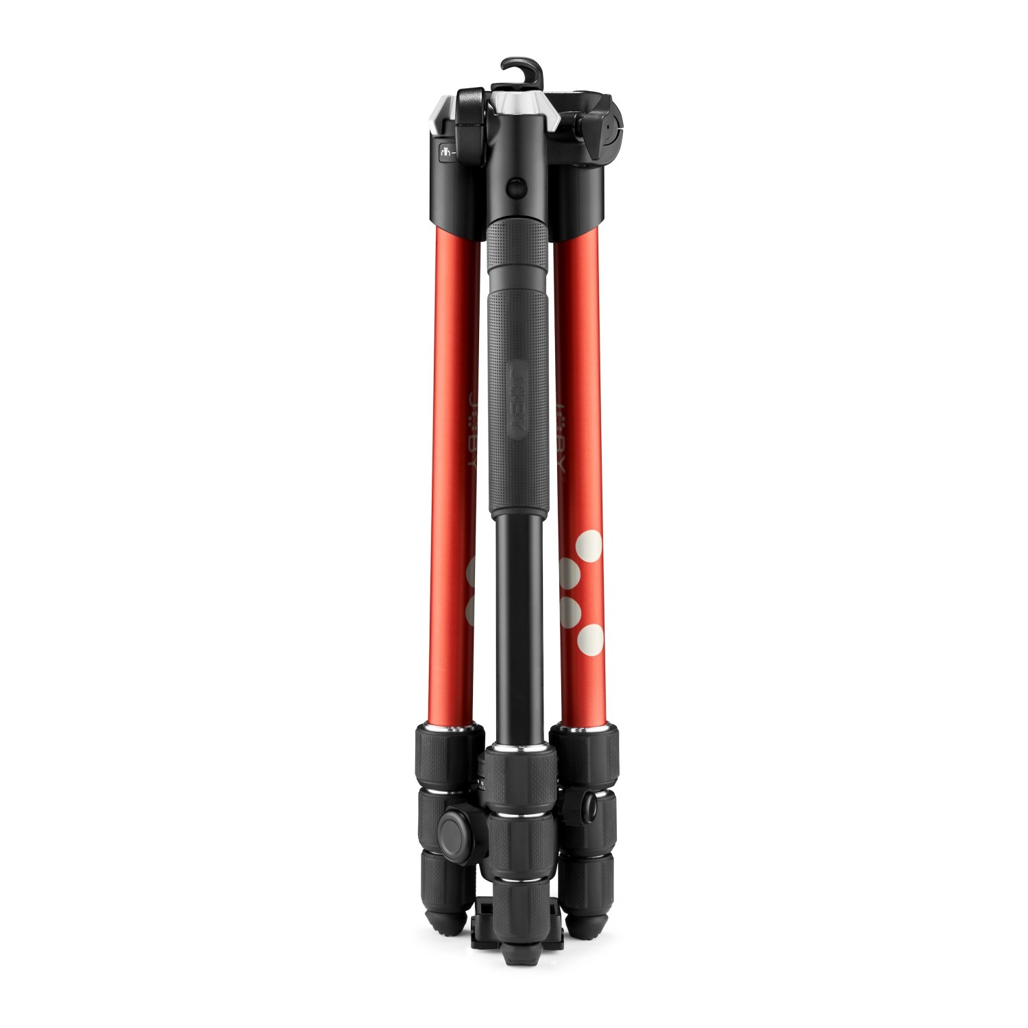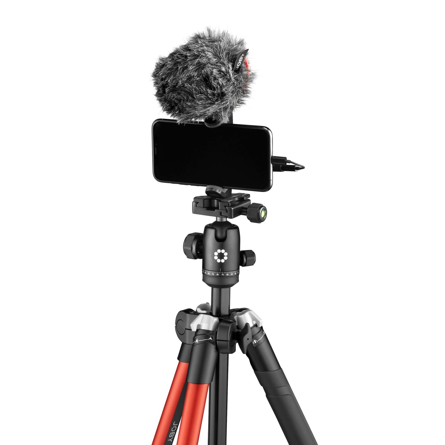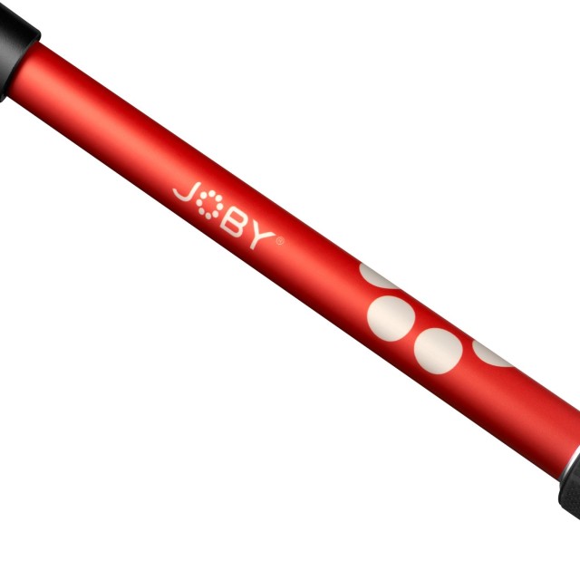 Disponible en aluminio rojo y negro. También se suministra con un soporte para teléfono Joby con un mecanismo de doble bloqueo seguro, que cuenta con dos roscas de 1/4" para fijar el teléfono tanto en horizontal como en vertical. Es compatible con todos los smartphones de 60 a 140 mm de ancho.