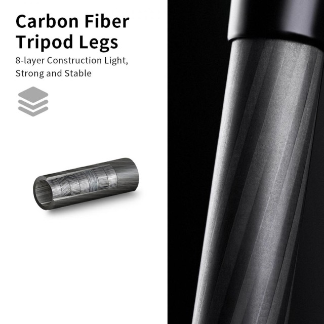 El amplio rango de altura, desde 21,3"/54 cm hasta 68,9"/175 cm, hace que este trípode de fibra de carbono sea flexible para una gran variedad de situaciones fotográficas. Se puede convertir en un monopié, lo que ofrece otra forma sencilla de fotografiar.