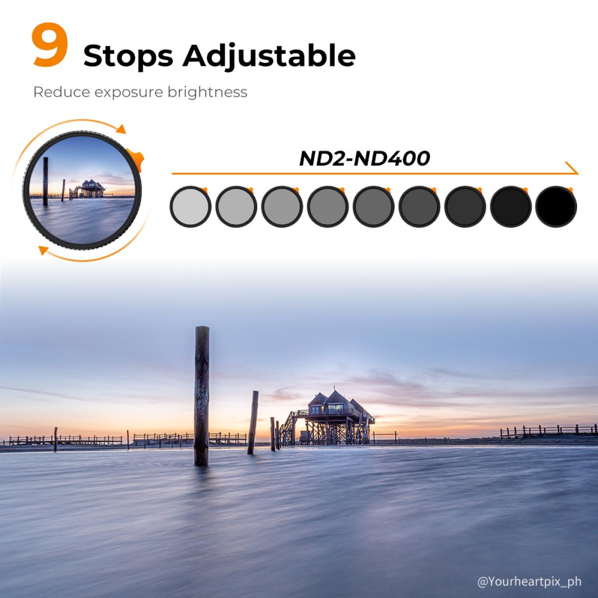 El cristal óptico importado del filtro ND de K&F Concept, fabricado con cristal japonés AGC de primera calidad y con 28 capas multicapa, está diseñado para ofrecer un rendimiento óptimo. Estas capas reducen significativamente los reflejos y los destellos, al tiempo que garantizan una excelente calidad de imagen. El filtro está diseñado para resistir las inclemencias del tiempo gracias a las capas impermeables, hidrófugas y resistentes al aceite aplicadas en ambos lados. Su marco cuenta con un diseño único de putter que permite un ajuste preciso del tope y facilita la grabación de vídeo sin problemas. Cada nivel del rango, desde ND2 hasta ND400, está claramente indicado en el marco. El filtro es ideal para usos ultra gran angulares, ya que su marco ultrafino de 7,4 mm garantiza que no se produzca viñeteado ni siquiera con una distancia focal de 16 mm. Es compatible con todos los objetivos de 105 mm; antes de realizar el pedido, los fotógrafos deben verificar el tamaño de la rosca del objetivo de su cámara, que suele estar indicado en el tubo del objetivo o impreso debajo de la tapa del objetivo con el símbolo «ø» (diámetro). Este filtro ND es una herramienta imprescindible para mejorar la fotografía y la grabación de vídeo.