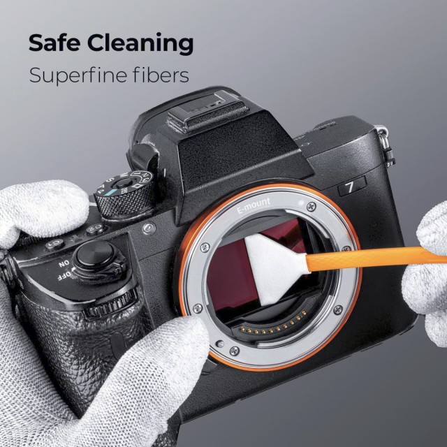 Mantén tus sensores APS-C y CMOS impecables gracias al juego de 14 bastoncillos de limpieza con puntas de doble cara (16 mm) de K&F Concept. Cada bastoncillo está cuidadosamente diseñado con puntas suaves de doble cara que permiten una limpieza versátil tanto de las zonas estrechas como de las anchas del sensor. El material suave garantiza un contacto seguro con las superficies sensibles, minimiza el riesgo de arañazos o daños y, al mismo tiempo, elimina a fondo el polvo y la suciedad.