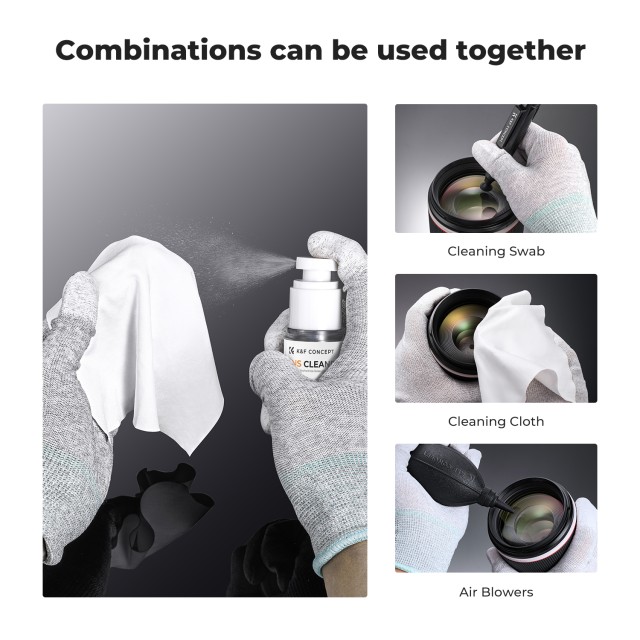 Kit de limpieza K&F Concept Spray and Microfiber Lens Cleaner Care, líquido limpiador no inflamable para lentes de cámaras y sensores digitales, apto para lentes con revestimiento, prismáticos, telescopios, cámaras y gafas