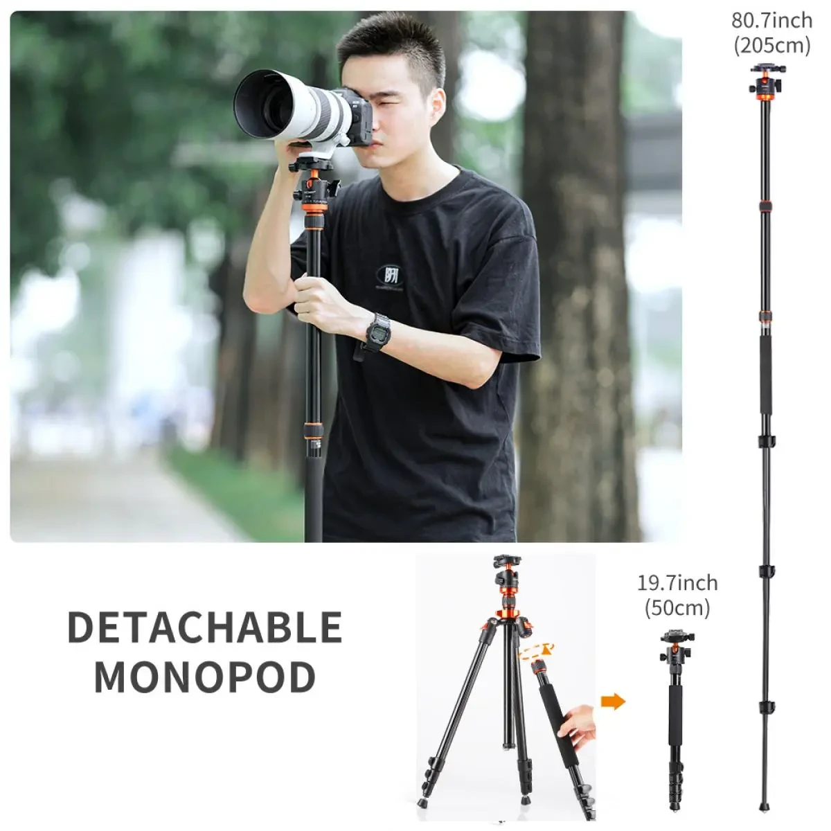 - * 【Ligero y portátil】 El trípode pesa 1,44 kg y tiene una capacidad de carga máxima de 10 kg. Altura de 198 cm y fácil de transportar. Este trípode es el compañero ideal para tus cámaras réflex digitales y, en comparación con productos similares, soporta una mayor carga sin perder estabilidad.