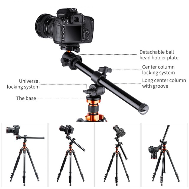 K&F 2m Overhead DSLR Tripod Compact Portable Vlog Tripod Monopod K234A7+BH-28L +Extension Arm