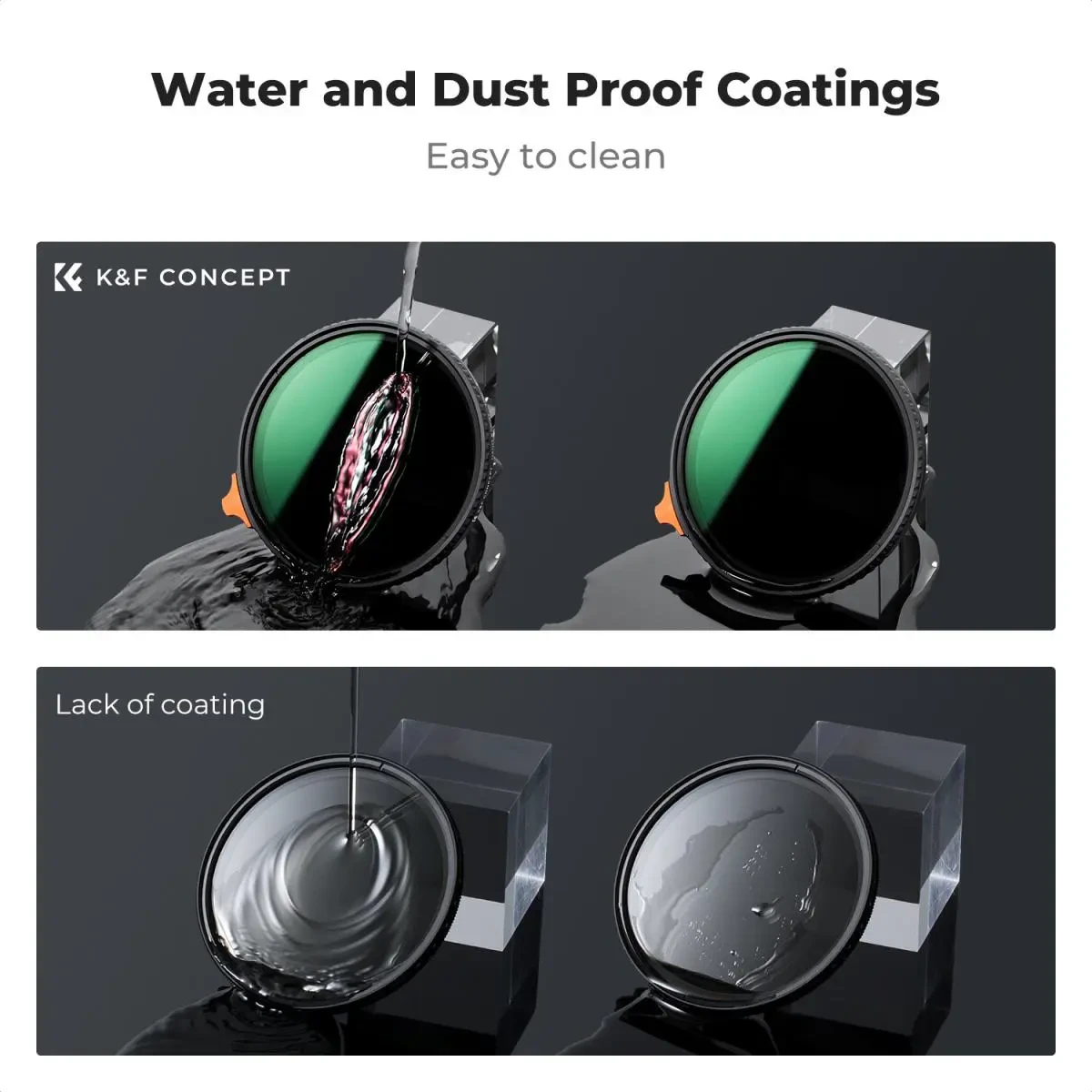 - * 【Resistente al agua y a los arañazos】El filtro ND K&F Concept está equipado con capas multicapa hidrófugas, resistentes al aceite y a los arañazos en ambos lados, por lo que está totalmente protegido y es ideal para usos aventureros.