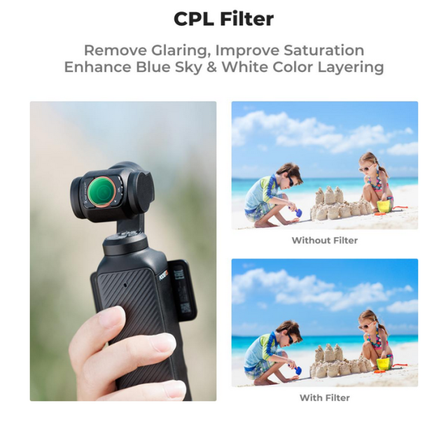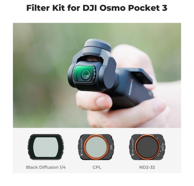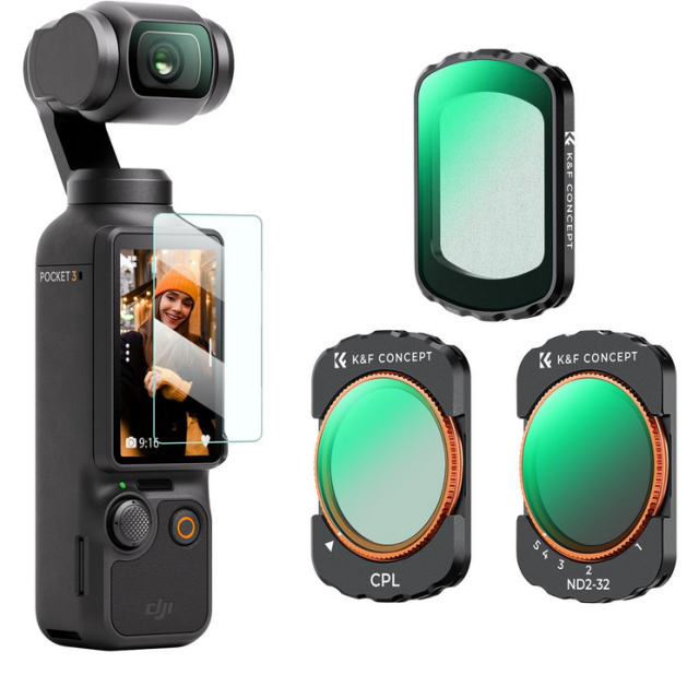 El juego de 3 filtros K&F para DJI Osmo Pocket 3 incluye un filtro CPL, un filtro ND2-32 y un filtro difusor negro de 1/4, todos ellos fabricados con cristal óptico AGC de importación de alta calidad con recubrimientos multicapa. Estos filtros se caracterizan por sus propiedades hidrófugas, antipolvo, resistentes a la grasa y antiarañazos, lo que garantiza un fácil mantenimiento y una gran durabilidad. Este versátil juego de filtros cubrirá tus necesidades diarias a la hora de fotografiar y ampliará tu experiencia fotográfica con la cámara Osmo Pocket 3.