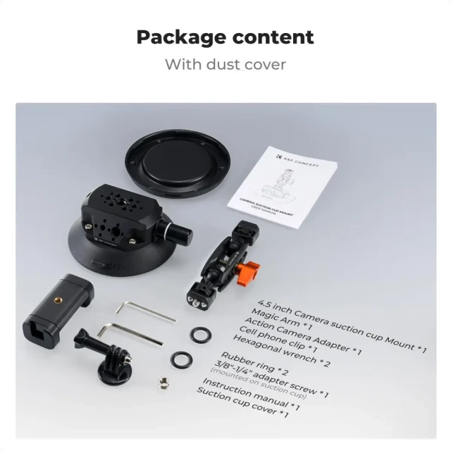 K&F 4.5" Suction Cup Camera Mount with Double Ball Head Magic Arm