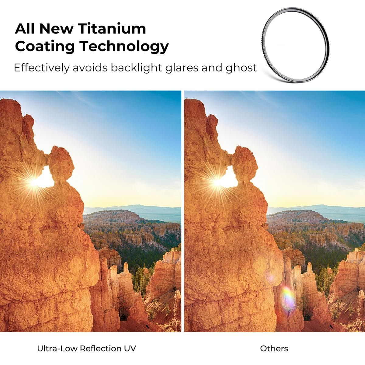Filtro UV K&F Concept de 40,5 mm Nano-X con reflexión ultrabaja: reflectividad del 0,1 %, cristal HD con 28 capas de recubrimiento nano verde, resistente al agua y a los arañazos, marco fino de 3,3 mm para una imagen nítida y sin reflejos.