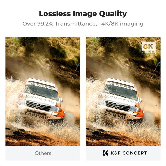 El filtro UV tiene dos funciones: una de ellas es evitar que la radiación UV afecte al CCD y atenuar el tono azulado de las imágenes causado por la radiación UV, lo que garantiza la claridad y la intensidad del color. La otra es proteger el objetivo contra daños por golpes, agua, polvo, arañazos, grasa y huellas dactilares. El filtro UV endurecido y resistente a los golpes de &F Concept está fabricado con cristal japonés AGC importado; es resistente a los golpes, impermeable y resistente a los arañazos.