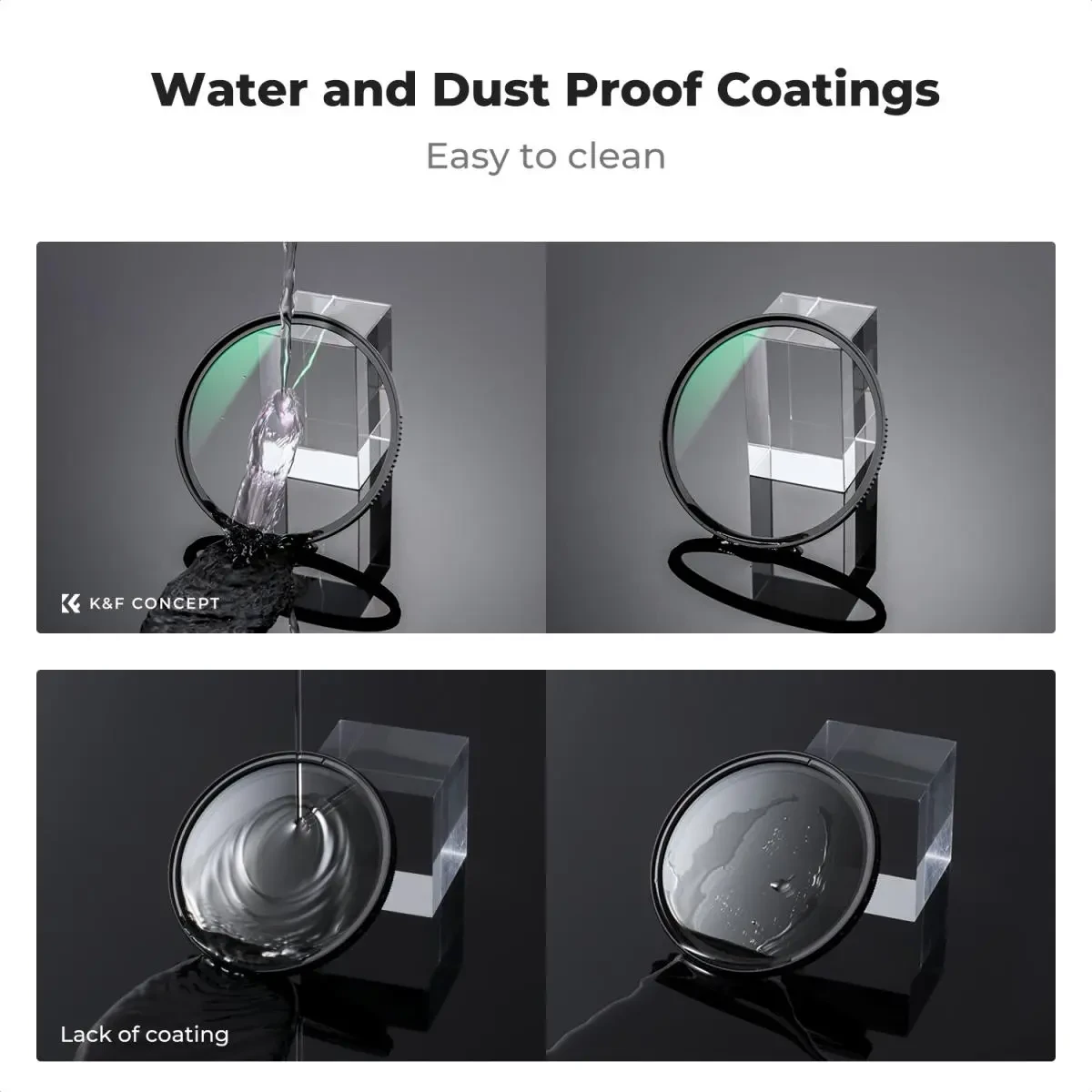 - * 【Juego de filtros K&F Concept 2 en 1】 El juego de filtros K&F Concept incluye un filtro polarizador Nano-X (filtro CPL), un filtro UV MC, dos tapas metálicas para el objetivo y un estuche de almacenamiento, lo que te facilitará y hará más agradables tus salidas fotográficas