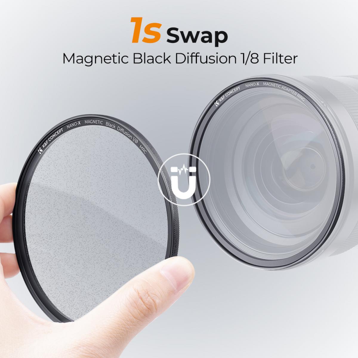 Filtro difusor magnético negro de 55 mm, filtro de 1/8 para efectos especiales HD con revestimiento multicapa, resistente al agua, a los arañazos y a los reflejos, serie Nano-X