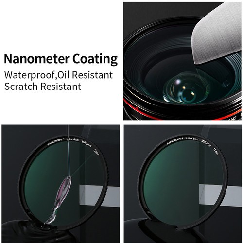 El filtro K&F Concept 55 mm XU10 Ultra Slim B270 MCUV es un filtro protector UV de alta gama con filtro UV L380, un revestimiento multistrato de 18 capas y tecnología de resistencia nano. Su montura de aluminio ultradelgada minimiza el efecto de viñeteado y, al mismo tiempo, protege el objetivo contra arañazos, agua y polvo.