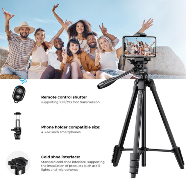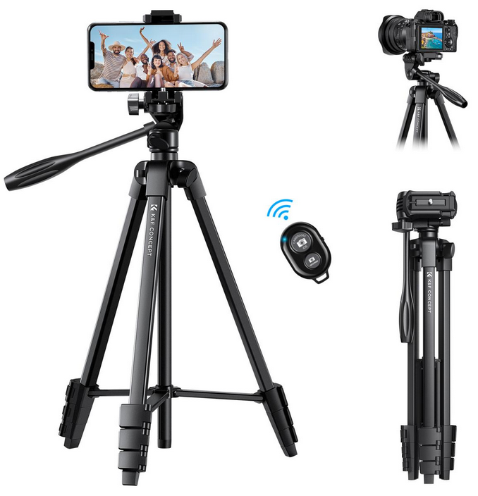 El trípode de viaje de aluminio K&F de 59,4''/1,5 m es un trípode ligero y versátil diseñado tanto para teléfonos inteligentes como para cámaras. Pesa solo 0,61 kg, tiene una altura ajustable (17-60 pulgadas), permite tomar fotos panorámicas en un rango de 360° y cuenta con un diseño plegable compacto (42 cm) con mando a distancia Bluetooth, por lo que es…