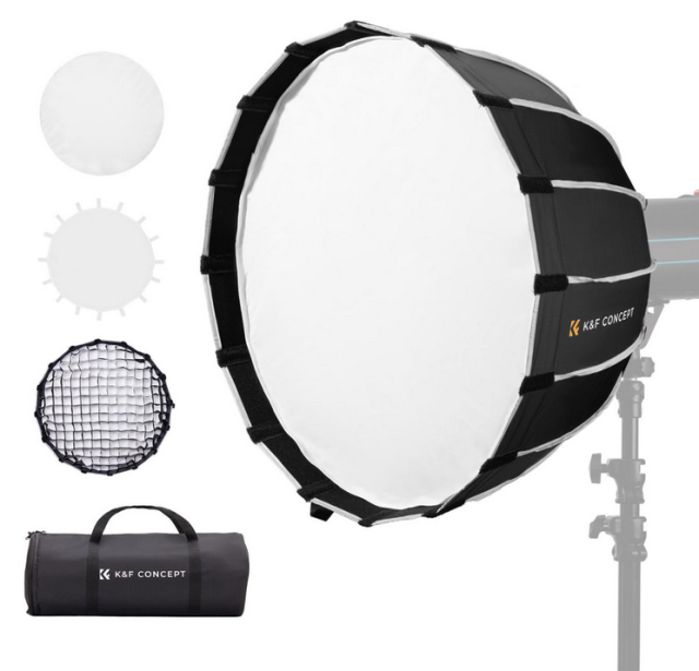 El softbox de montaje rápido K&F 60 cm 16 con montura Bowens es un accesorio imprescindible para fotógrafos y videógrafos que desean lograr resultados de iluminación profesionales. Esta caja de luz parabólica hexagonal está diseñada para proporcionar una excelente difusión y control de la luz, garantizando una iluminación hermosa y uniforme de tus sujetos.