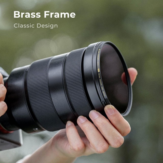 Consigue efectos profesionales de exposición prolongada y un aspecto cinematográfico con el filtro K&F Concept 67 mm Nano-X Pro Brass Frame ND1000. Este filtro está fabricado con un marco de latón ultradelgado y, en comparación con los marcos de aluminio, ofrece una resistencia excepcional, protección contra la corrosión y una fácil instalación. El moldeado CNC integrado con una precisión de 0,01 mm garantiza un ajuste perfecto en el objetivo y elimina el viñeteado tanto en objetivos gran angulares como en teleobjetivos.
