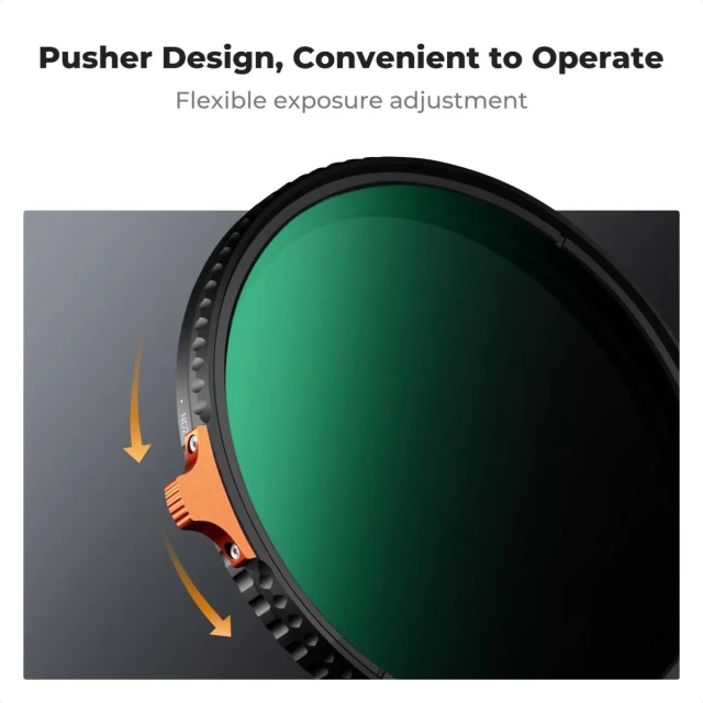 - * 【Control preciso y marcado claro】El marco estriado está diseñado como una palanca deslizante para un ajuste preciso. Cada posición, desde ND2 hasta ND400, está claramente marcada, lo que permite una rotación continua de 360°, ideal tanto para fotografía como para grabación de vídeo.