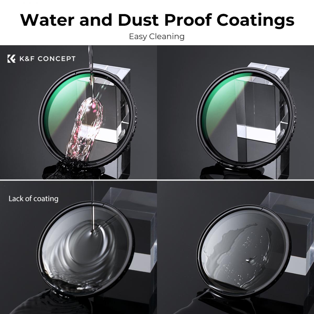 Filtro ND fabricado con cristal óptico en lugar de resina óptica. El filtro reduce la cantidad de luz sin alterar el equilibrio general de los colores. Para este filtro ND de 72 mm, el objetivo debe tener un diámetro de 77 mm.
