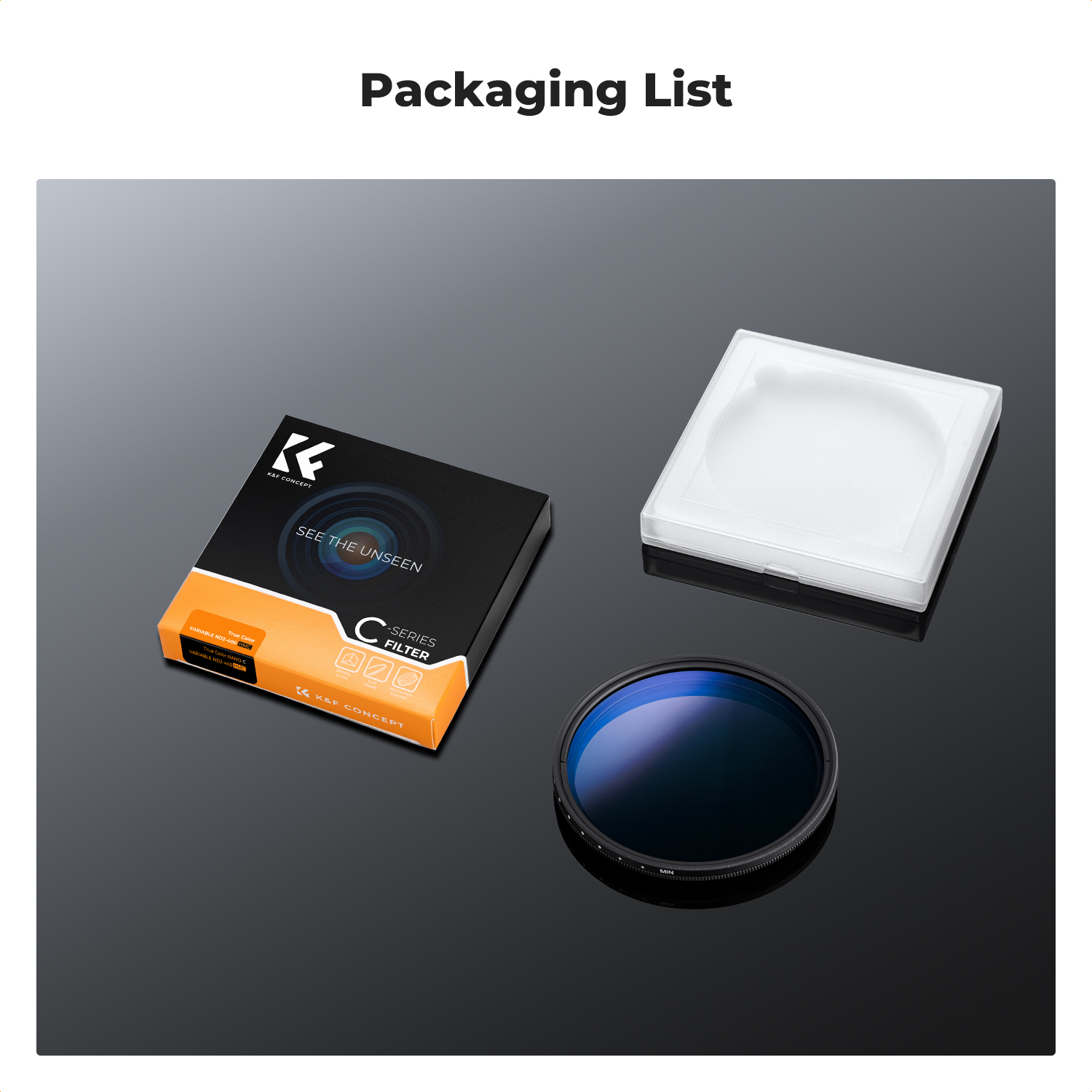 El filtro K&F de 72 mm True Color Variable ND2~ND400 cuenta con tecnología de recubrimiento de titanio para una reproducción precisa del color, reducción de luz ajustable y cristal óptico japonés de primera calidad para una nitidez de imagen excepcional.
