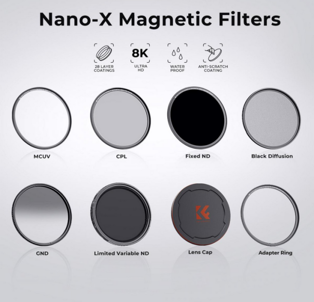 Mejora tu experiencia fotográfica con el juego de filtros magnéticos K&F de 77 mm (3 unidades), diseñado pensando en la comodidad y la calidad. Este completo juego incluye un filtro MCUV, un filtro CPL, un filtro ND1000 y un anillo adaptador magnético, todo ello en un resistente estuche para filtros. El innovador sistema magnético permite cambiar los filtros en un segundo, para que nunca te pierdas la foto perfecta, ni siquiera en condiciones difíciles.