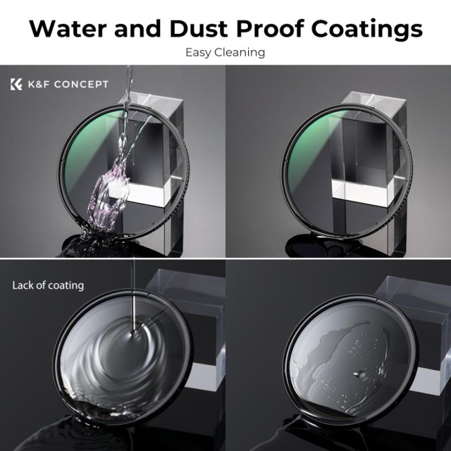 - El filtro polarizador K&F cuenta con 28 capas multicapa (MRC) que ayudan a repeler el agua, el polvo y la grasa, son resistentes a los arañazos y, al mismo tiempo, evitan la aparición de imágenes fantasma.