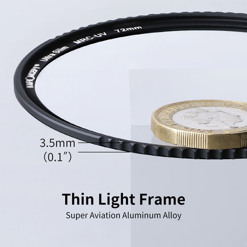 El filtro K&F Concept 77 mm XU10 Ultra Slim B270 MCUV es un filtro protector UV transparentede alta gama con filtro UV L380, un revestimiento multifuncional de 18 capas y tecnología de resistencia nano. Su marco de aluminio ultradelgado minimiza el efecto de viñeteado y, al mismo tiempo, ofrece una imagen con resolución Full HD y una protección fiable para el objetivo.