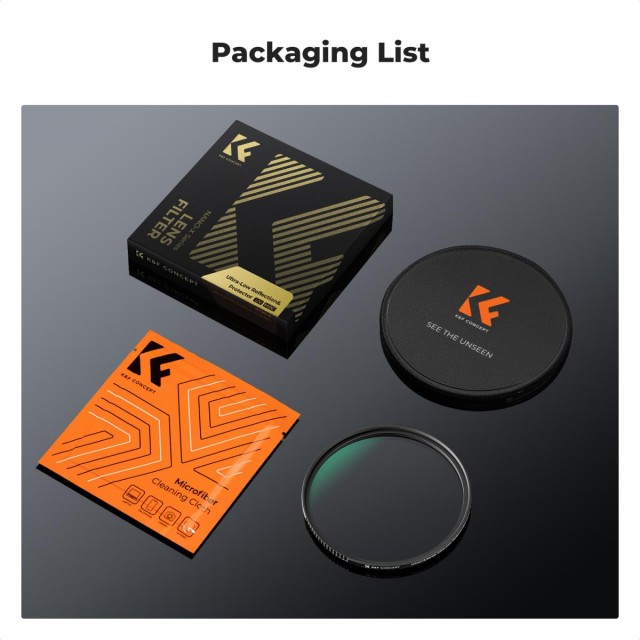 El filtro UV tiene dos funciones: una de ellas es evitar que la radiación UV afecte al CCD y atenuar el tono azulado de las imágenes causado por la radiación UV, lo que garantiza la claridad y la intensidad del color. La otra es proteger la lente contra daños por golpes, agua, polvo, arañazos, grasa y huellas dactilares. El filtro UV endurecido y resistente a los golpes de &F Concept está fabricado con cristal japonés AGC importado; es resistente a los golpes, impermeable y resistente a los arañazos.