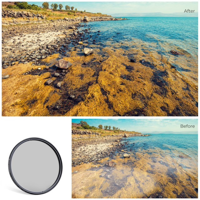 * 【Polarización circular】Filtra eficazmente los reflejos nocivos en superficies no metálicas, como el agua y el cristal. Girando el filtro se consigue el grado de filtrado deseado. Con el CPL, puedes hacer que el cielo sea más azul, las hojas más verdes, reducir o eliminar los reflejos y obtener una imagen más nítida.